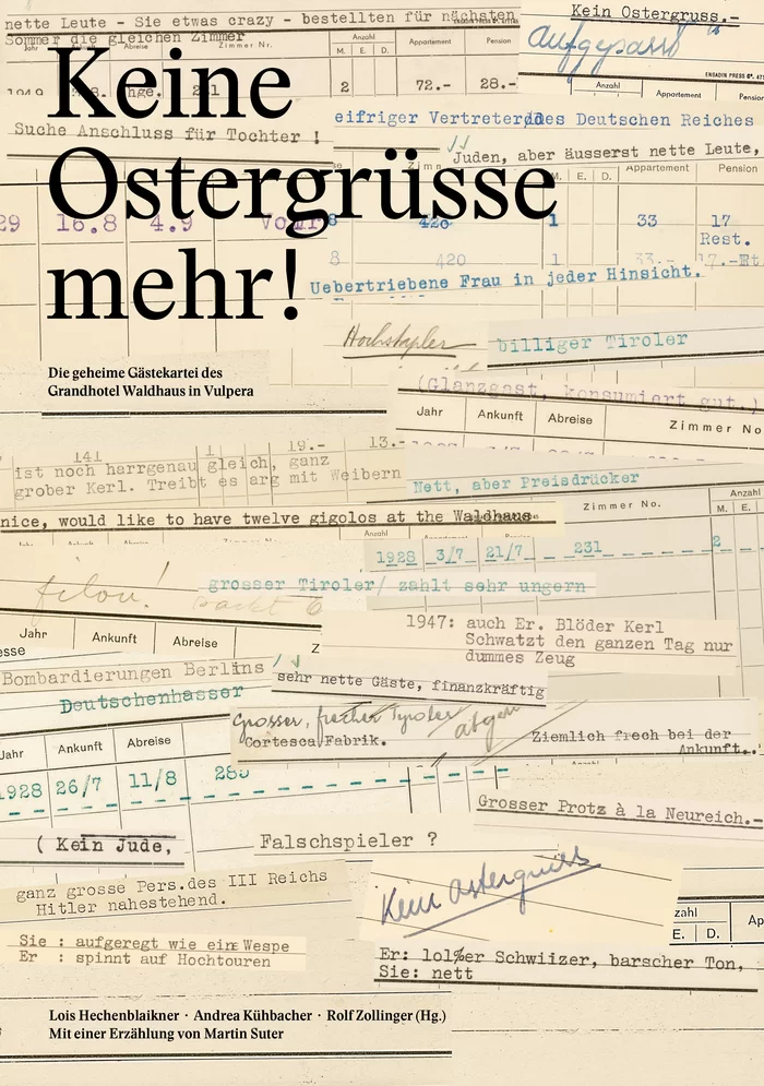 «Keine Ostergrüsse mehr!» – heisst es, wenn man den Gast nicht wiederhaben wollte. Mit «Martini» werden die Vieltrinker festgehalten. Das Personal ertrug ungehobeltes Benehmen stoisch, notierte quasi als Ventil ihre Erfahrungen pointiert auf den Karteikarten. Während dem Zweiten Weltkrieg diente das Grandhotel hochrangigen Nationalsozialisten wie jüdischen Gästen als Rückzugsort. Das muss einem Pulverfass vergleichbar gewesen sein. Doch explodiert ist das Haus erst 1989 aufgrund einer Brandstiftung. Gerettet wurden u.a. die 20'000 Gästekarten. Diese einmalige Quelle erlaubt einen Blick auf die Gäste aus der Perspektive jener, die die Karteikarten geführt haben. Und zum Schluss fragt man sich, ob diese Tradition auch heute noch in diversifizierter Form weitergeführt wird? Das wäre eine Recherche wert.